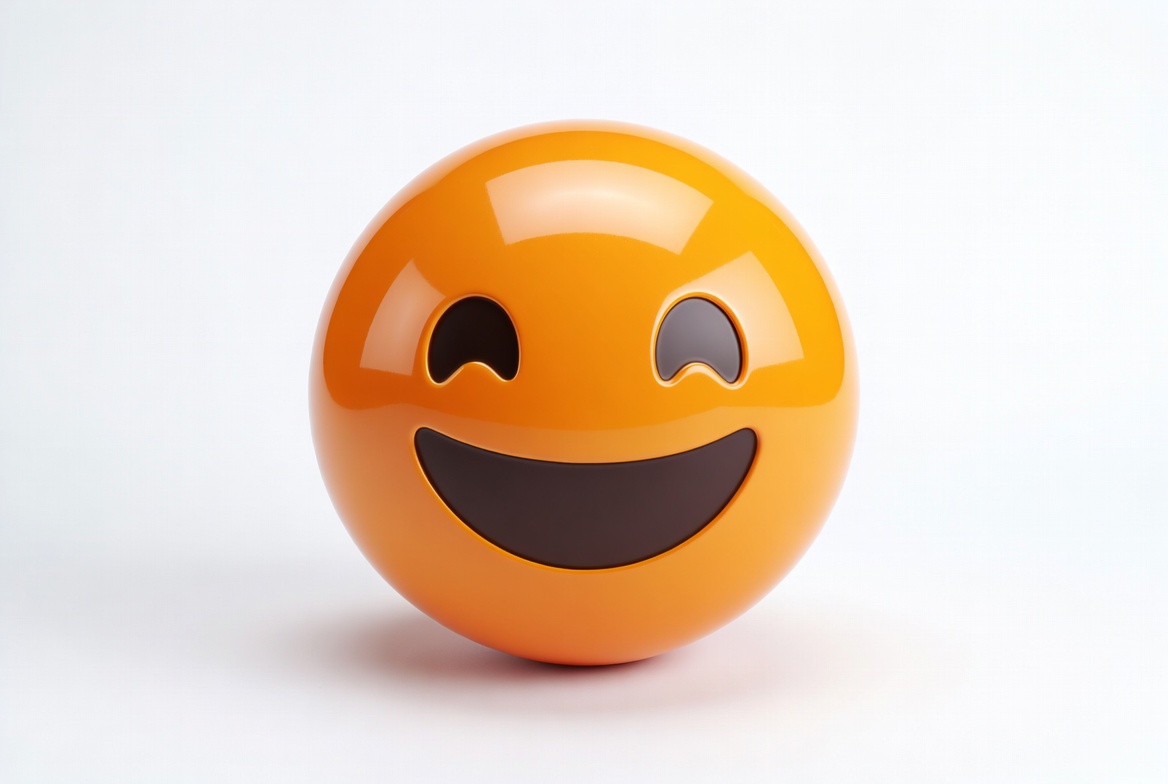 3D emoji, cartoon face, emoji, emoticon, glossy surface, happy emoji, isolated background, orange emoji, shiny ball, smiley face, smiling eyes, white background, grinning face