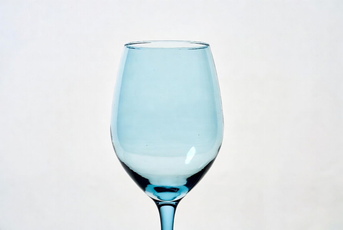 beverage glass, blue glass, crystal glass, drinkware, elegant glass, empty glass, glassware, isolated background, stemware, tableware, tall stem, transparent glass, tulip bowl, white background, wine glass