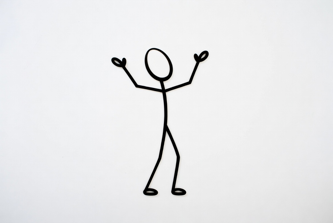 arms raised, black lines, cartoon, clipart, figure, illustration, isolated background, line drawing, male, man, simple drawing, stickman, white background, stick figure