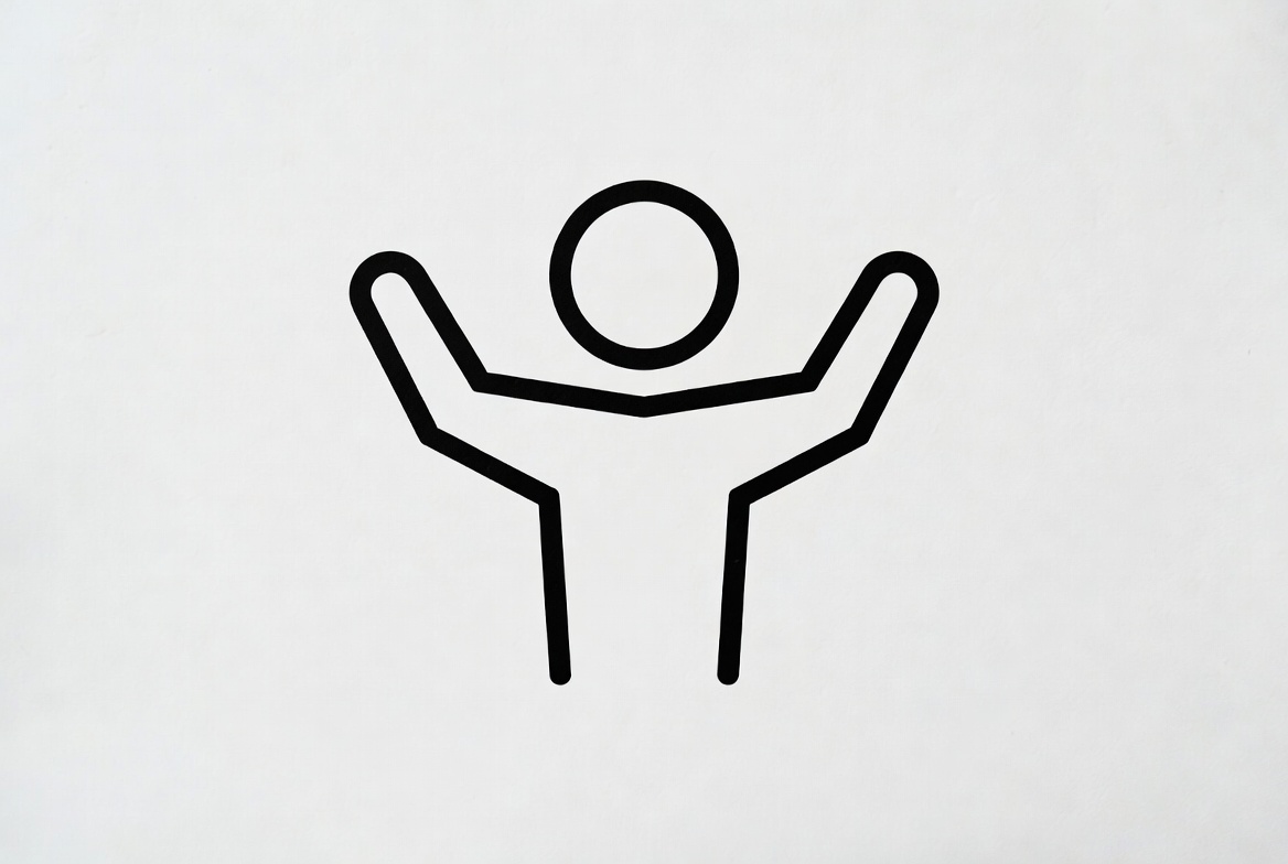 Stick figure raising arms