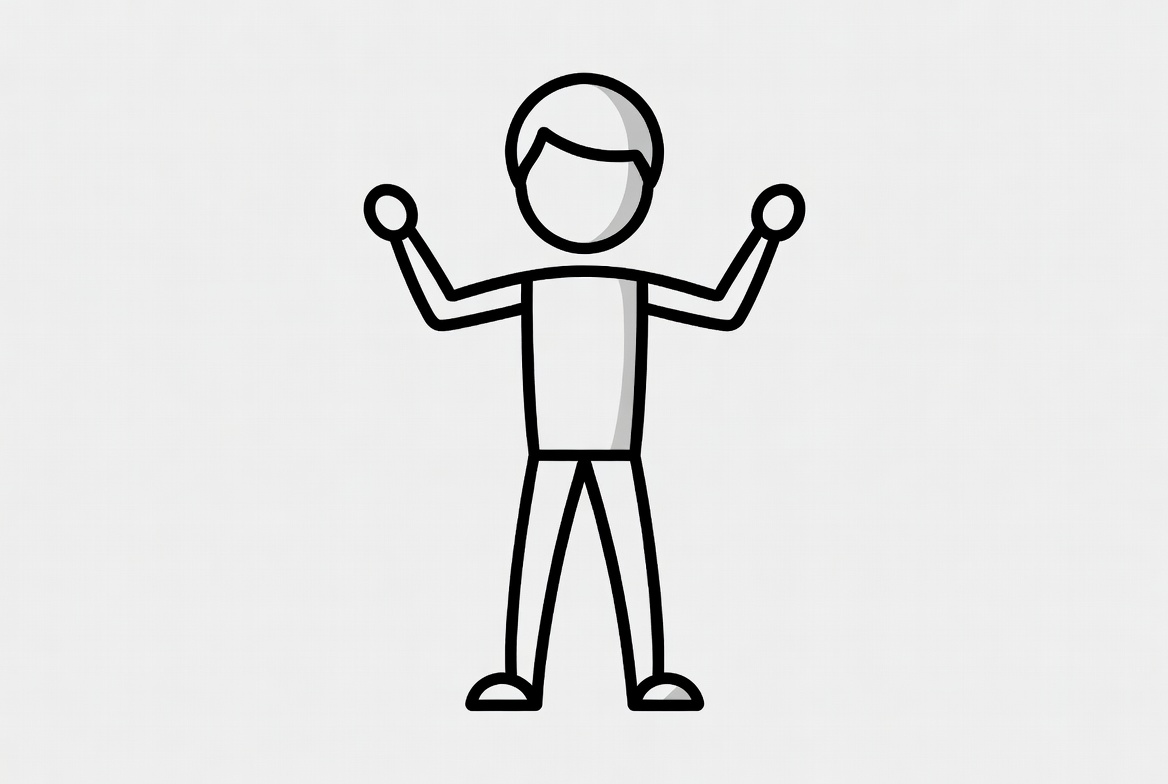 arms raised, black and white, cartoon, clipart, figure, graphic, icon, illustration, isolated background, line art, male, outline, person, raised arms, silhouette, simple drawing, standing man, stick figure, vector, man