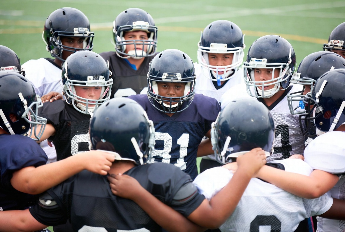 African-American, arms around, boy athletes, boys, football gear, football helmets, football jerseys, football players, group huddle, helmets, huddle formation, jerseys, kids sports, male, outdoor sports, sports field, sports team, team circle, team huddle, team unity, turf field, young athletes, youth football, youth team, football huddle