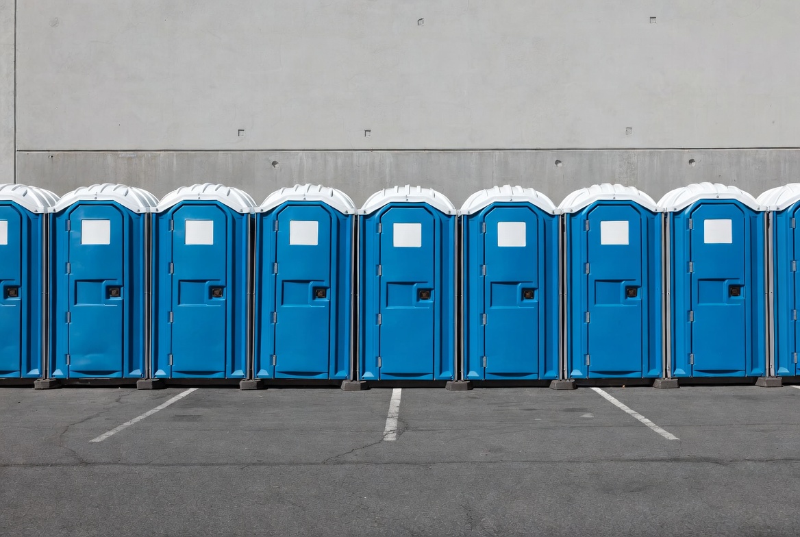 Row of Blue Portable Toilets