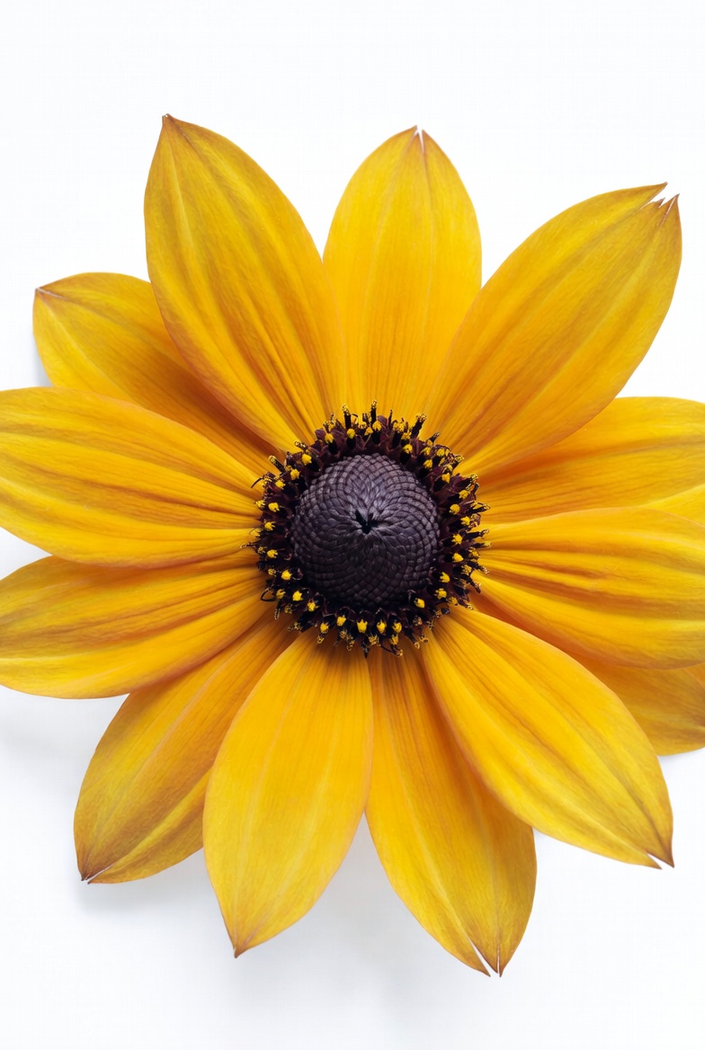 bloom, brown center, close-up, daisy-like, floral, flower, garden flower, isolated background, macro photography, nature, petals, rudbeckia, vibrant yellow, white background, yellow petals, black-eyed susan
