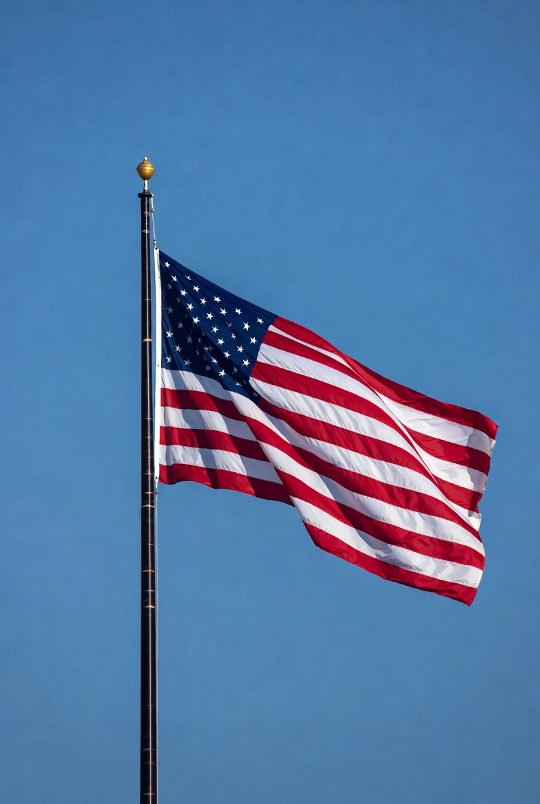 American Flag Waving on Pole