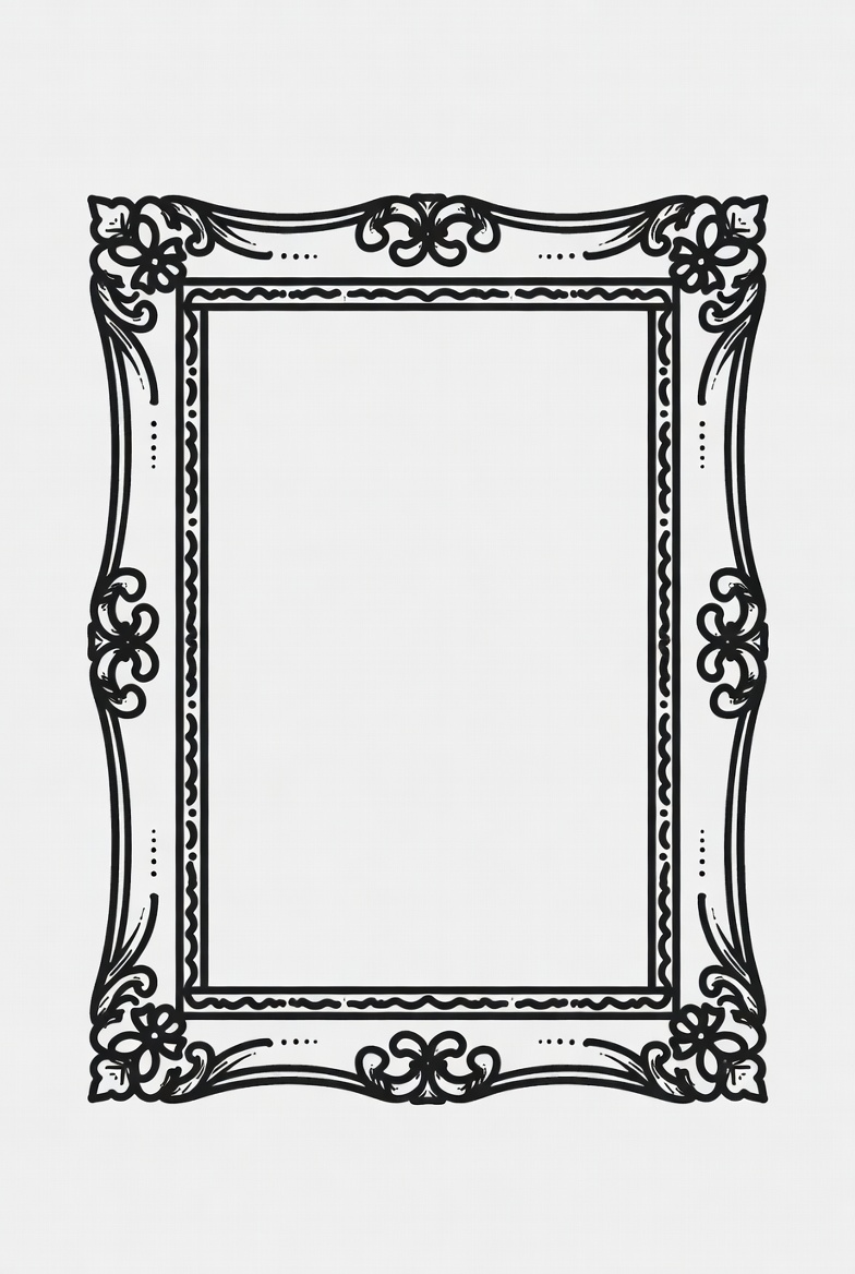 baroque frame, black outline, blank frame, clipart, decorative frame, empty frame, floral frame, illustration, isolated, line art, ornate frame, photo frame, scrollwork, vintage frame, white background, picture frame
