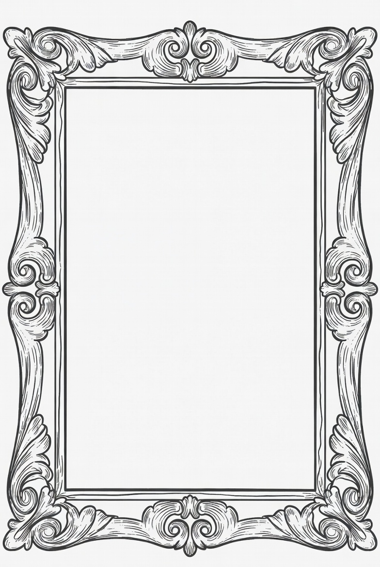 baroque frame, black and white, blank frame, clipart, decorative frame, empty frame, floral design, illustration, isolated background, line art, picture frame, rectangular frame, scrollwork, vintage frame, ornate frame