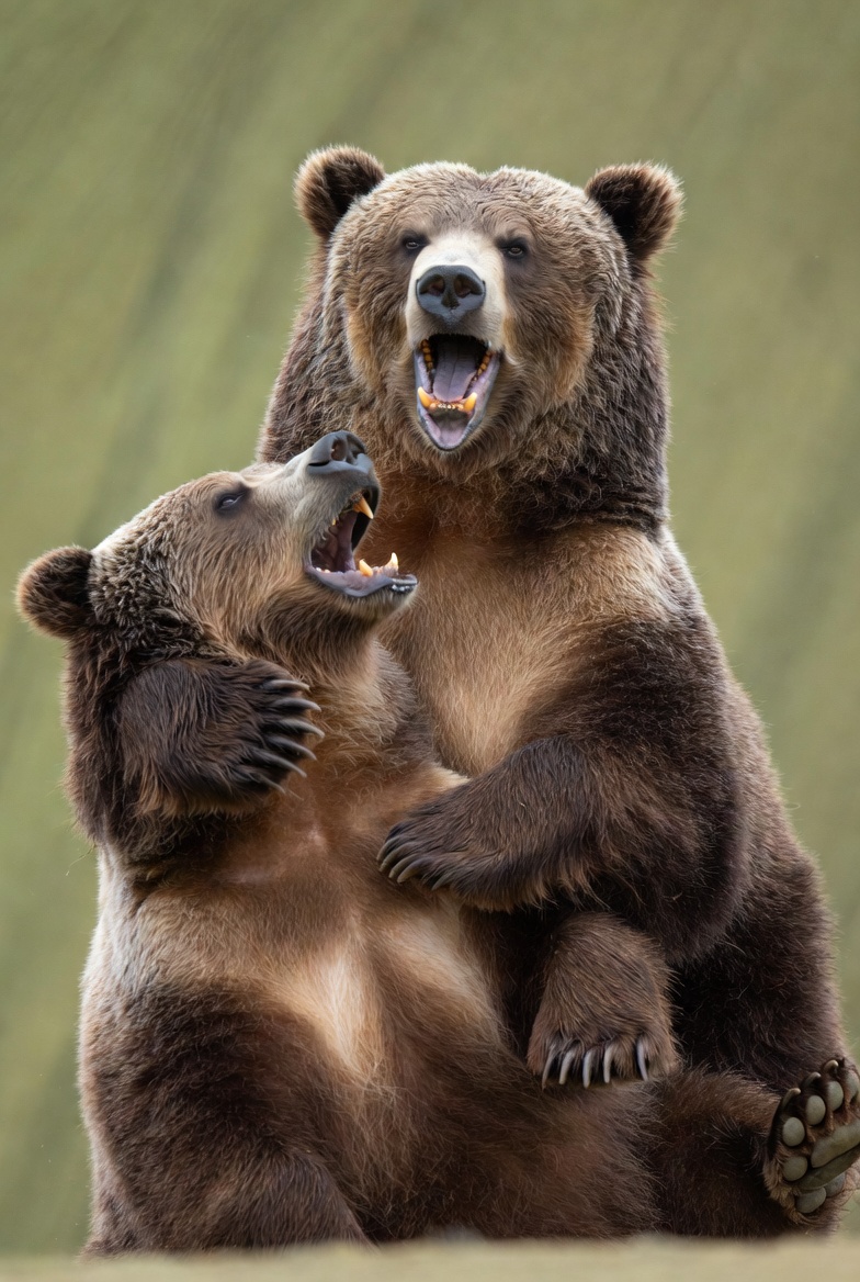 aggressive bears, animals, bear hug, bear roar, bears, brown bears, claws, furry bears, grass field, green grass, grizzly, mammal, nature, outdoor, paws, roaring bears, standing bears, teeth, two bears, wild bears, wilderness, wildlife, grizzly bears