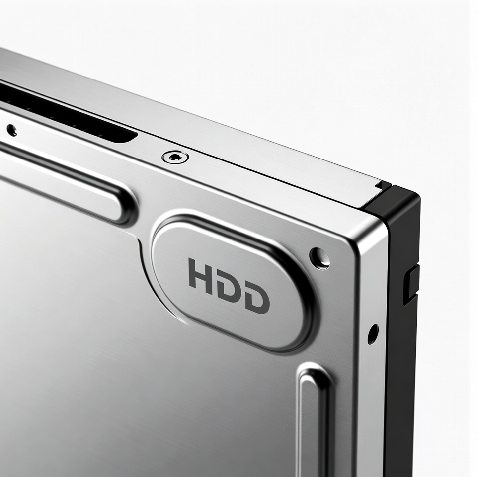 SATA drive, black accents, computer hardware, data storage, drive closeup, hard disk drive, hard drive, isolated background, label, mounting holes, silver HDD, silver metal, storage device, tech hardware, HDD