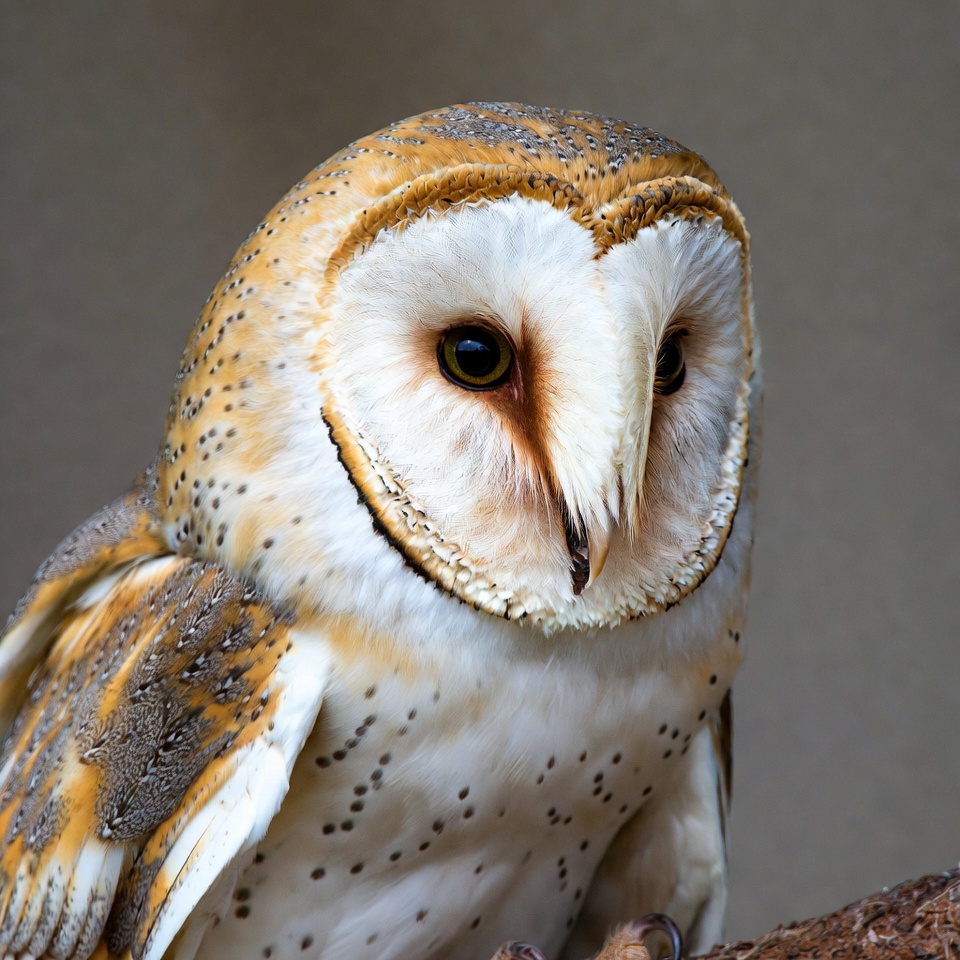 animal, bird, birds of prey, branch, brown feathers, closeup, facial disc, feathers, heart face, isolated background, large eyes, orange eyes, owl, perch, portrait, raptor, talons, white feathers, wildlife, barn owl