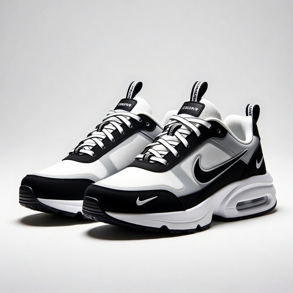 Air Max, Excee, Swoosh logo, air cushion, athletic shoes, black sneakers, casual sneakers, footwear, gym shoes, isolated background, lace-up shoes, mesh panels, running shoes, sneakers pair, sportswear, trainer shoes, white sneakers, Nike sneakers