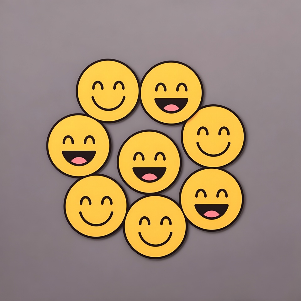 Circle of Seven Smiling Yellow Emojis