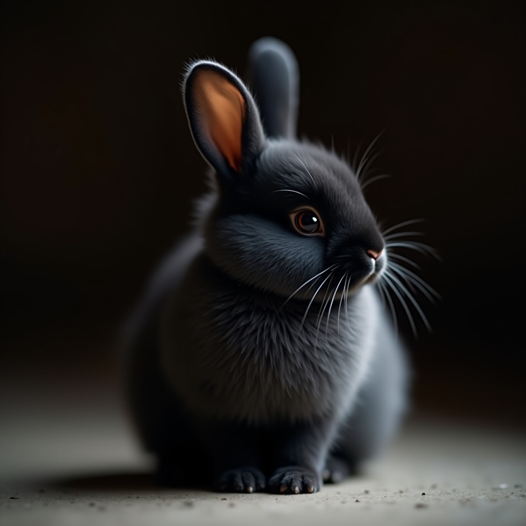 animal portrait, cute animal, dark background, ears, eyes, fluffy bunny, fur, gray rabbit, isolated background, orange ears, pet rabbit, rabbit, sitting rabbit, whiskers, bunny