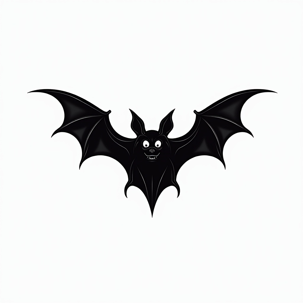 Cartoon black bat with wings spread