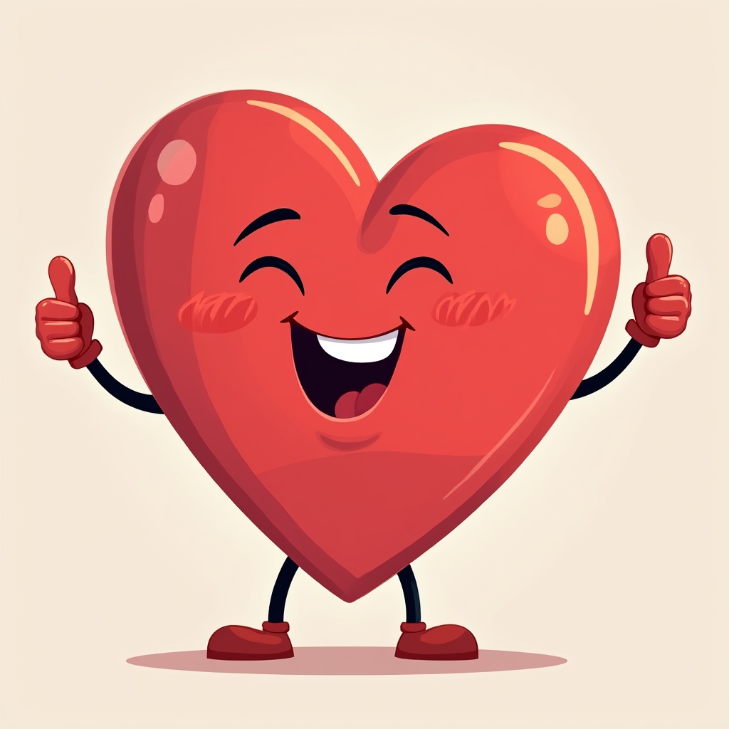 animated heart, cartoon heart, cheerful character, clipart, cute heart, glossy heart, happy heart, illustration, isolated background, love symbol, red heart, smiling face, thumbs up, vector art, heart