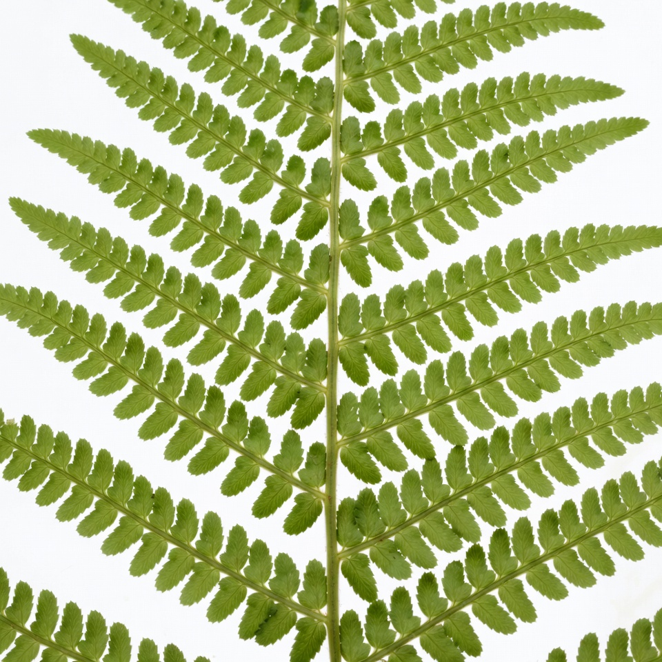 Green Fern Fronds on White Background