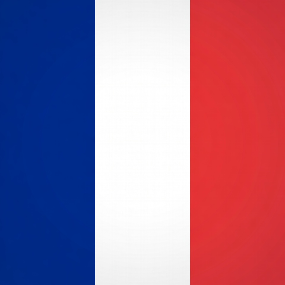 The French national flag features three vertical stripes. The left stripe is blue, the middle stripe is white, and the right stripe is red.
