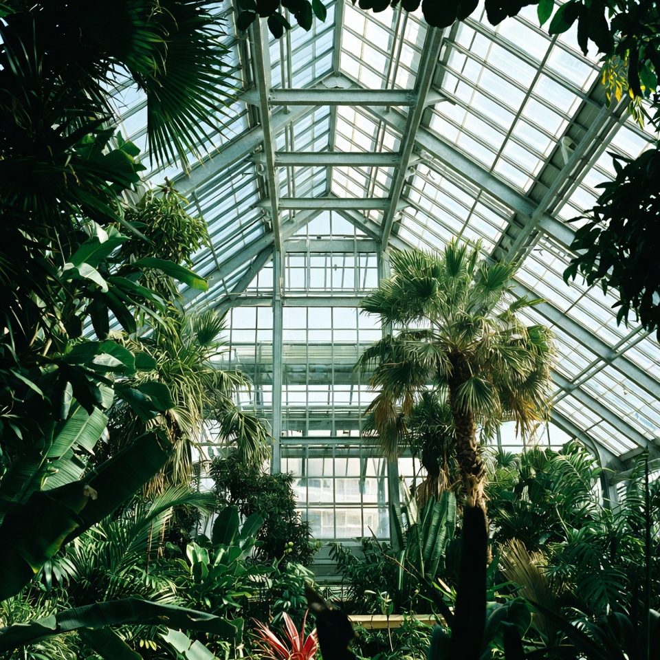 Glass Conservatory Filled with Tropical Plants