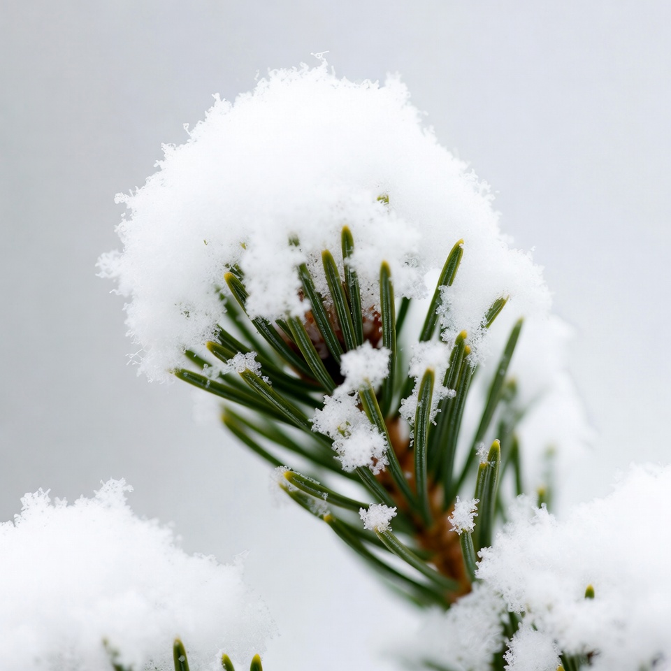 Snow-covered pine branch
