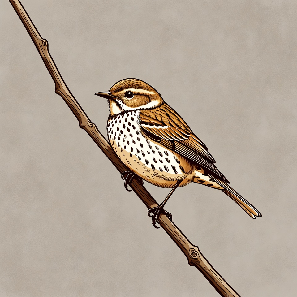 avian, bird, branch, brown bird, drawing, eye stripes, feathers, illustration, isolated background, nature, ornithology, perched, spotted wings, wildlife, Spotted Towhee