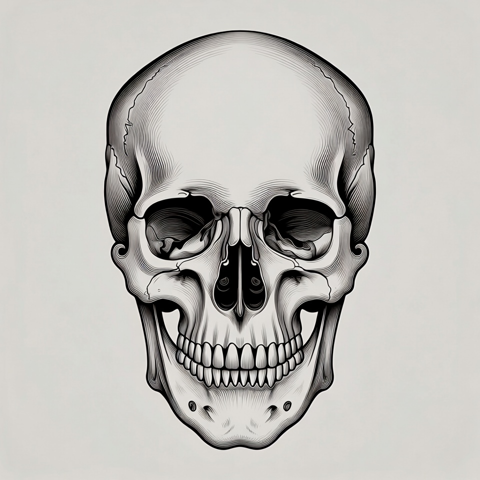 anatomy, artistic, black and white, bones, clipart, cranium, detailed, drawing, eye sockets, grayscale, head, human skull, illustration, isolated background, nasal cavity, realistic, skeleton, teeth, skull
