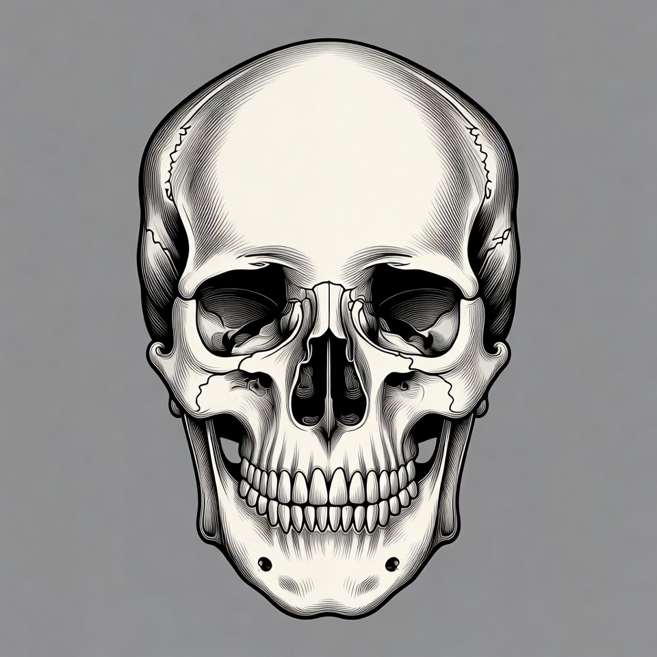 Halloween, anatomy, black and white, bones, clipart, death, drawing, front view, graphic, human skull, illustration, isolated background, line art, skeleton, skull