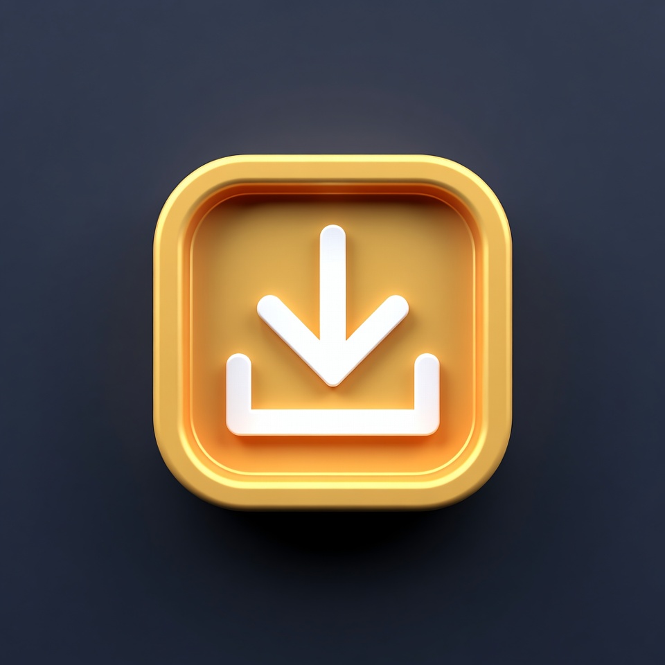 3D icon, app icon, digital download, download arrow, download button, glossy icon, isolated background, mobile icon, square icon, symbol, ui icon, vector icon, white arrow, yellow icon, download icon