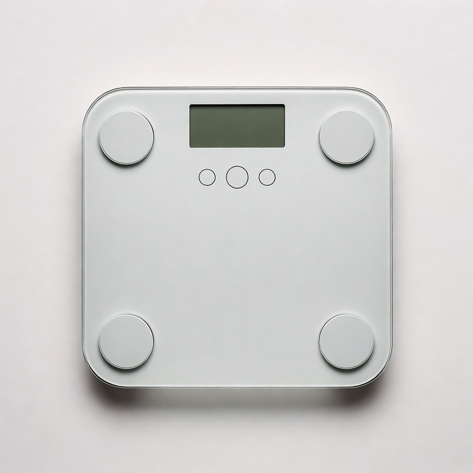 body weight scale, digital display, digital scale, fitness scale, glass scale, gray feet, home scale, isolated background, kitchen scale, modern scale, scale, square scale, weighing scale, white scale, bathroom scale