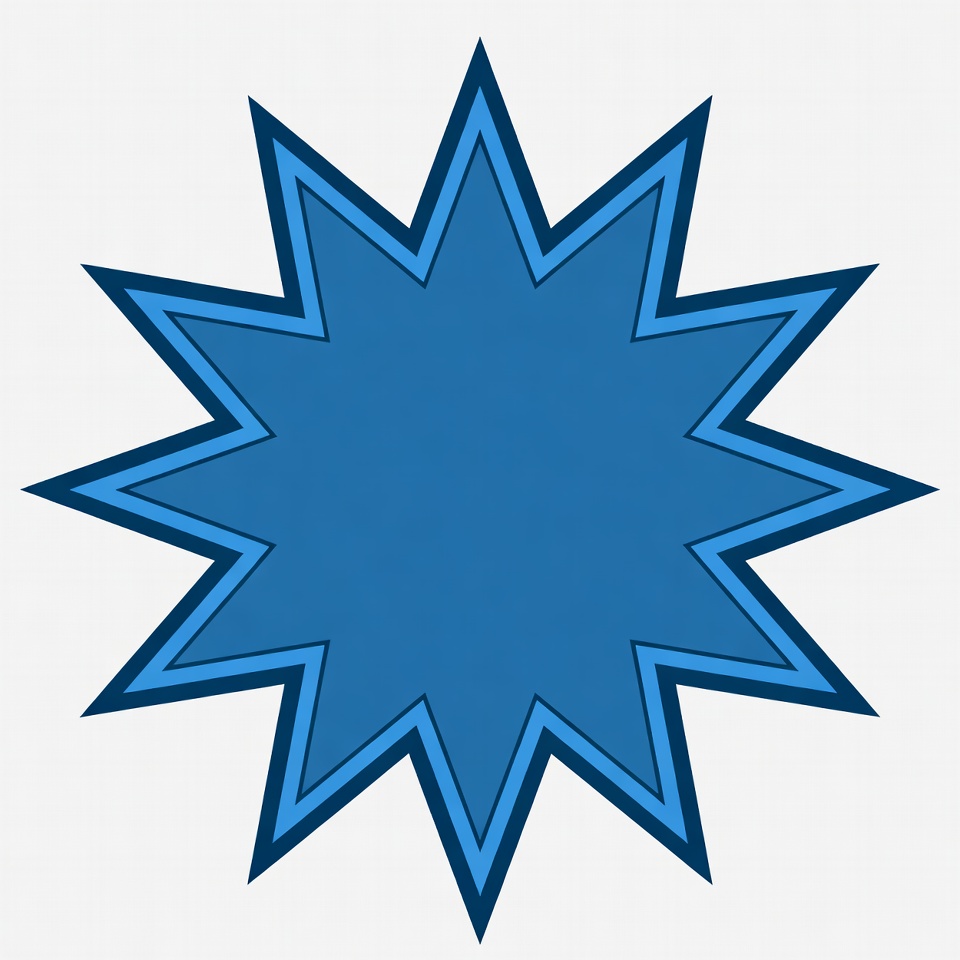 bold outline, clipart, gradient blue, graphic, illustration, isolated background, nine-pointed star, shape, simple star, star, star shape, vector, blue star