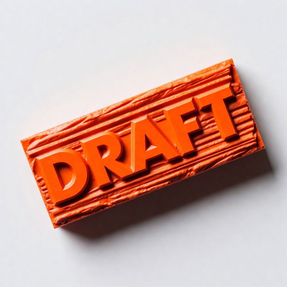 bold letters, draft, isolated, office stamp, orange stamp, red stamp, rubber stamp, stamp, textured surface, uppercase, white background, wooden stamp, draft stamp