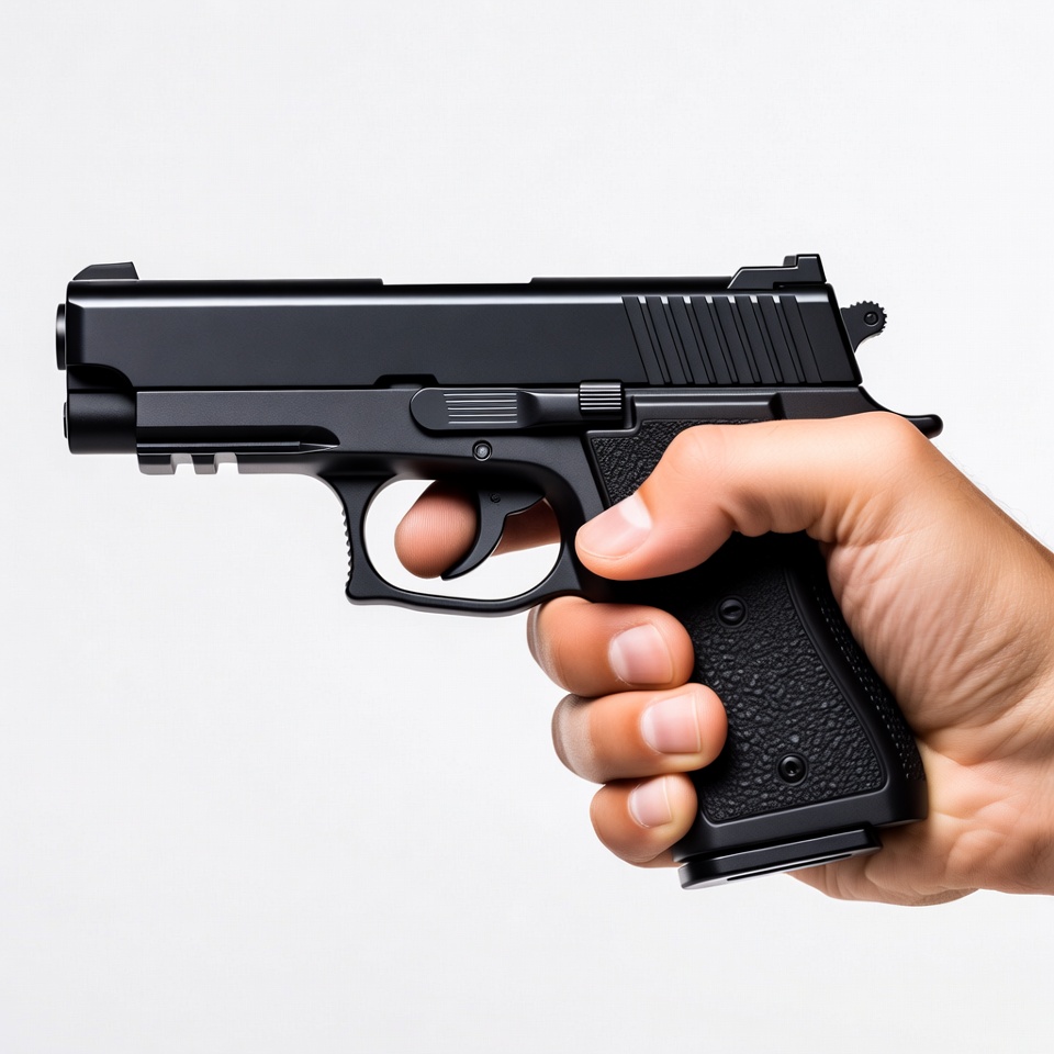 Hand holding black pistol