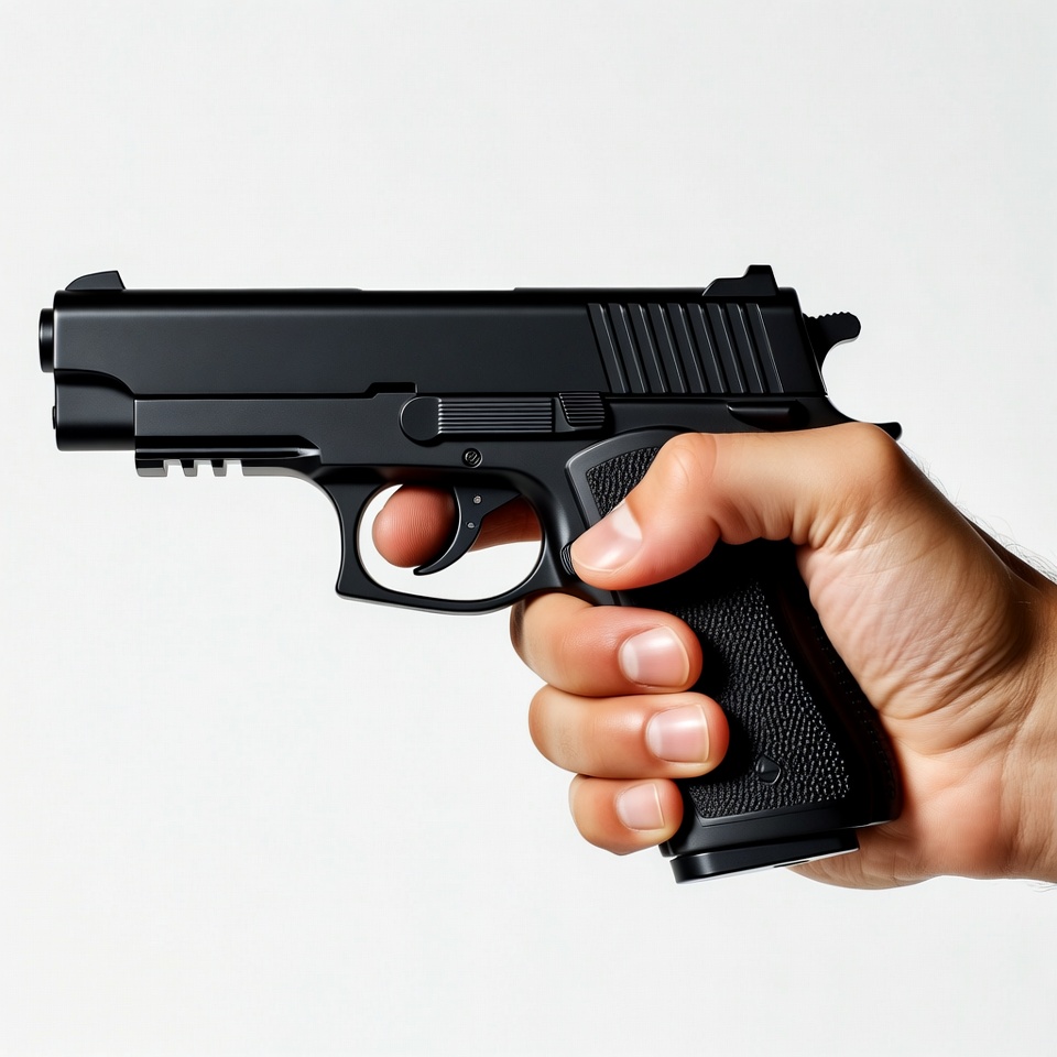 Hand holding black pistol