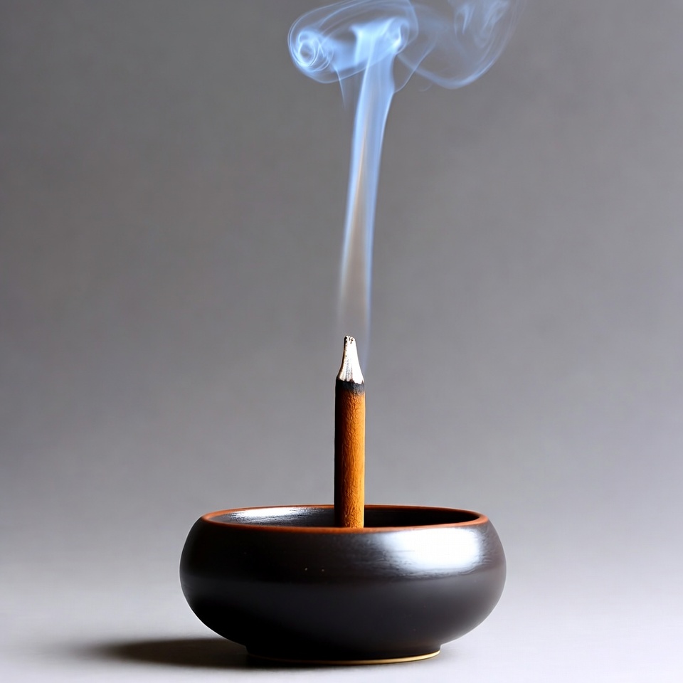 Incense Stick Burning in Ceramic Holder