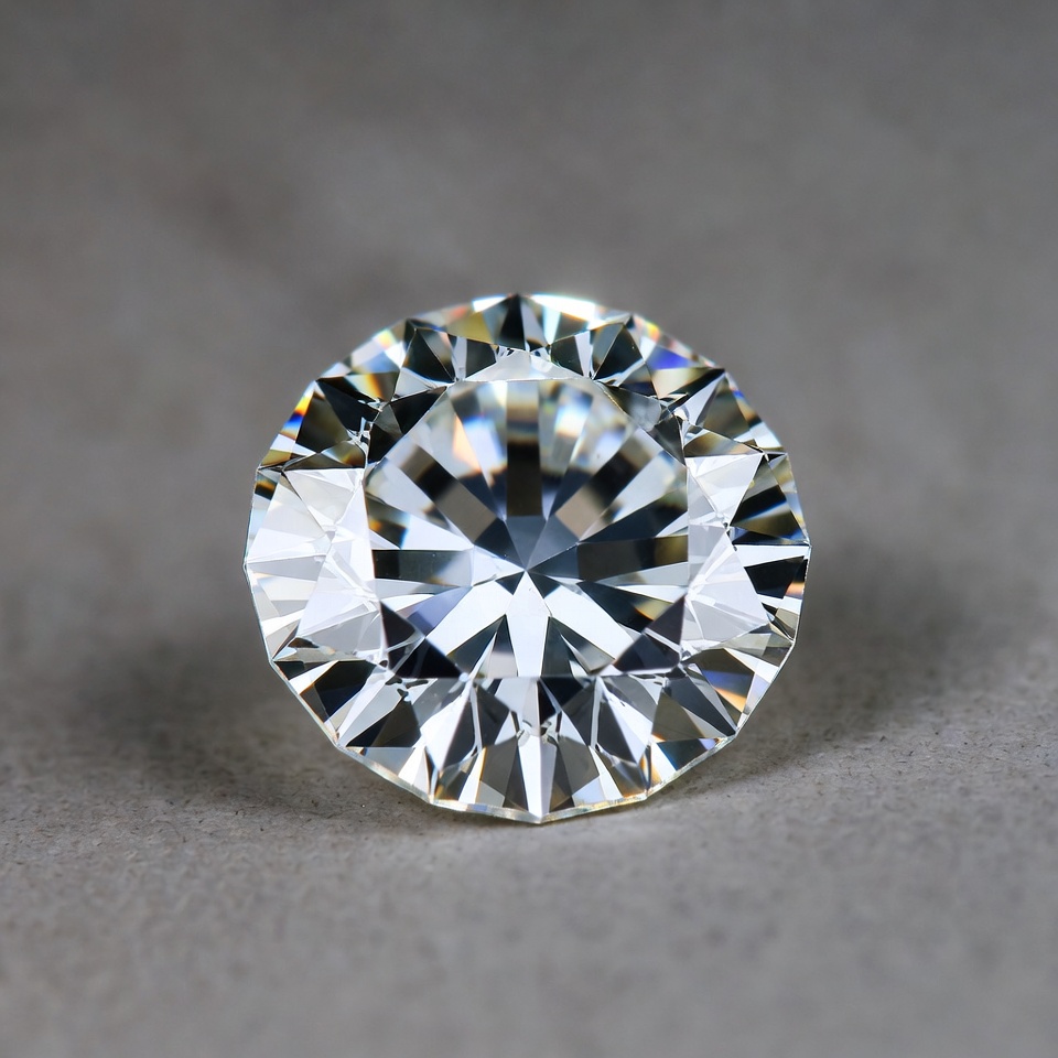 brilliant cut, clear diamond, cut diamond, diamond closeup, faceted gem, gem facets, gemstone, gray background, isolated gem, jewelry, luxury jewelry, precious stone, round brilliant, solitaire diamond, sparkling gem, white diamond, diamond