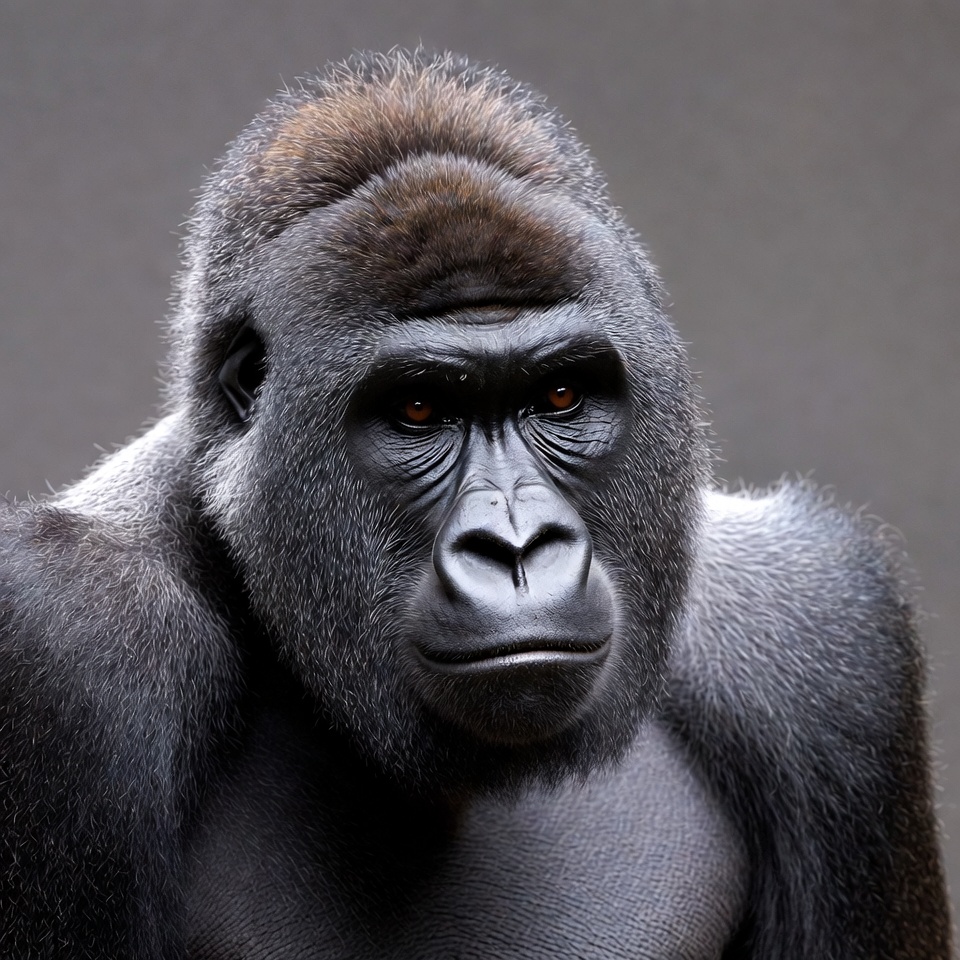 animal face, ape, black fur, brow, close-up portrait, dark background, headshot, intense stare, mammal, nostrils, powerful, primate, red eyes, serious expression, shoulders, silverback gorilla, wild animal, wildlife, zoo animal, gorilla