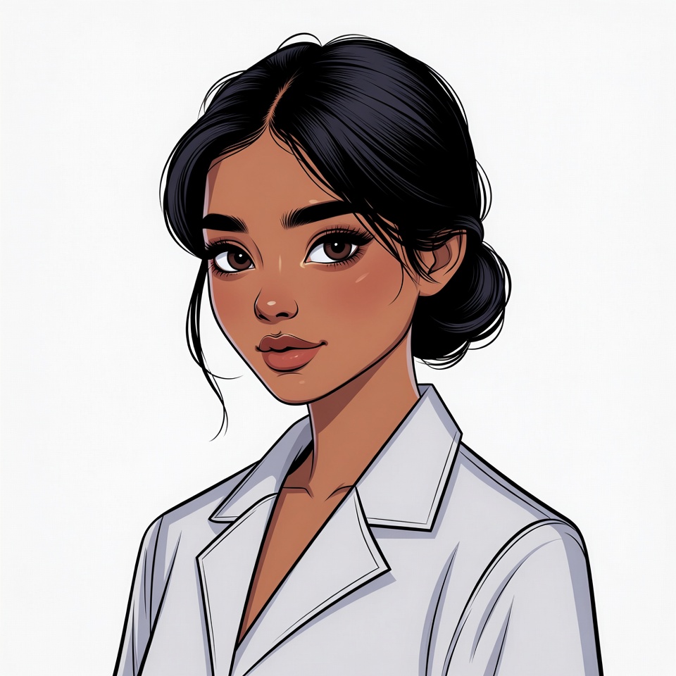 Asian, beautiful, black hair, brown eyes, bun hairstyle, closeup, collared jacket, digital art, elegant, face, female, full lips, illustration, isolated background, portrait, stylish, warm skin, white blazer, young, woman