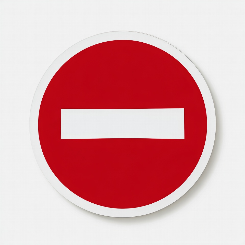 A red circular stop sign with a bold white horizontal bar in the center is shown on a plain white background. The sign has a white border around the red circle. It is isolated for clear visibility.