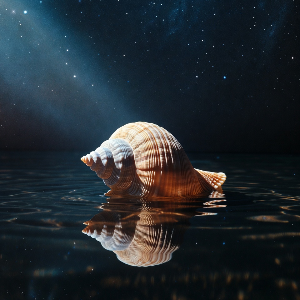 Conch shell in starry water