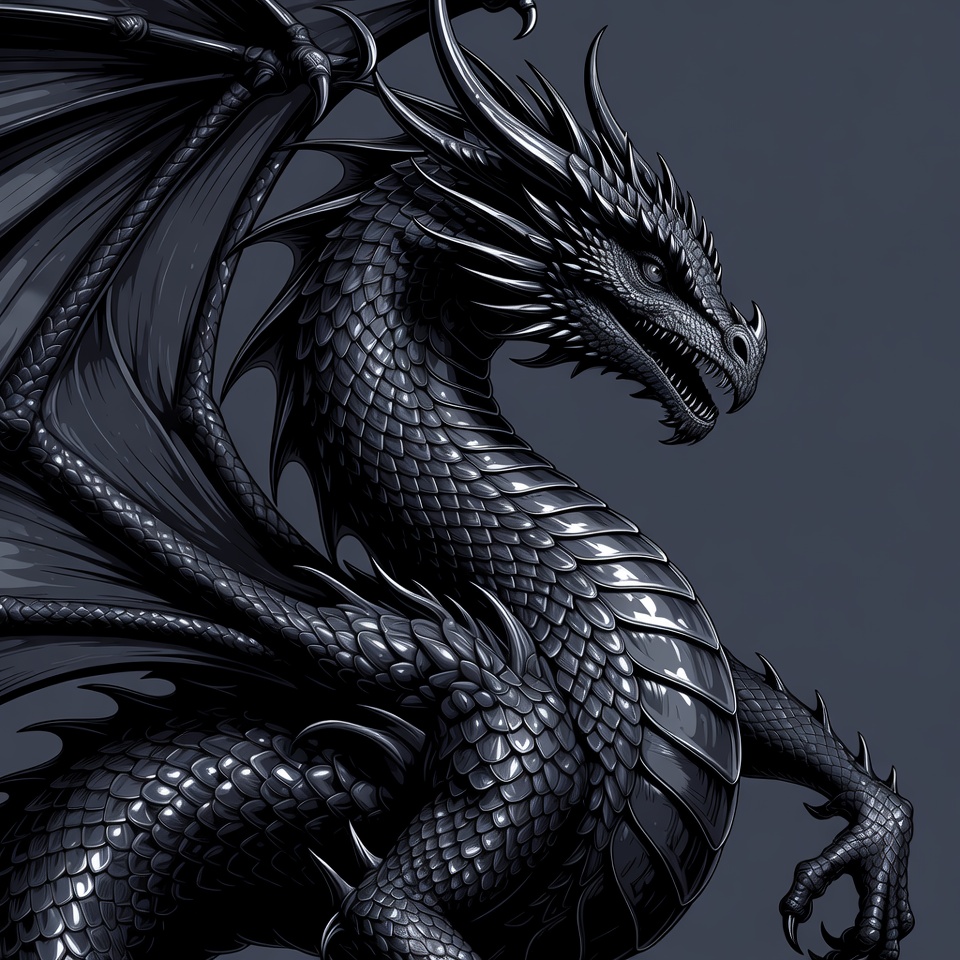 black dragon, claws, digital art, dragon head, dragon illustration, fantasy creature, fantasy dragon, fierce dragon, horns, illustration, isolated background, mythical creature, roaring dragon, scales, sharp teeth, wings, dragon