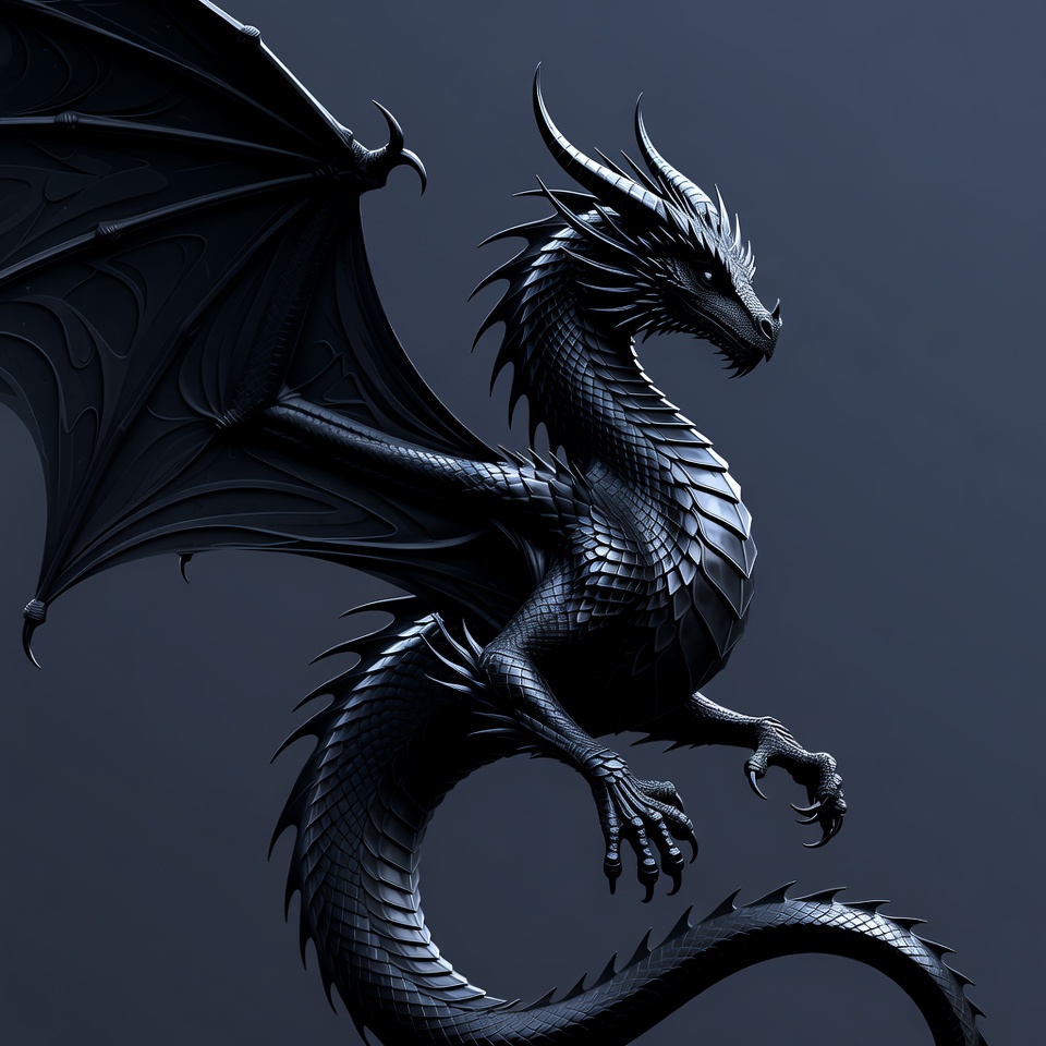 Black Dragon with Spread Wings