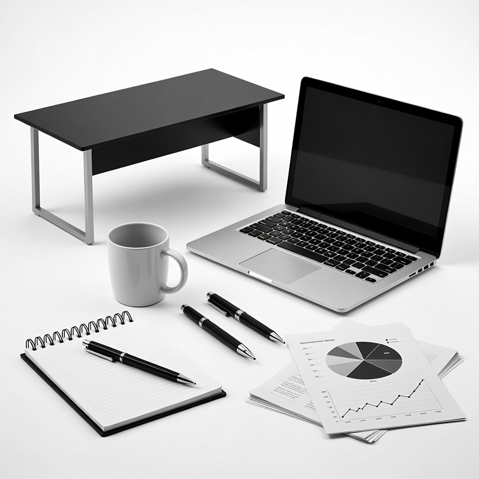 Office Desk with Laptop and Documents
