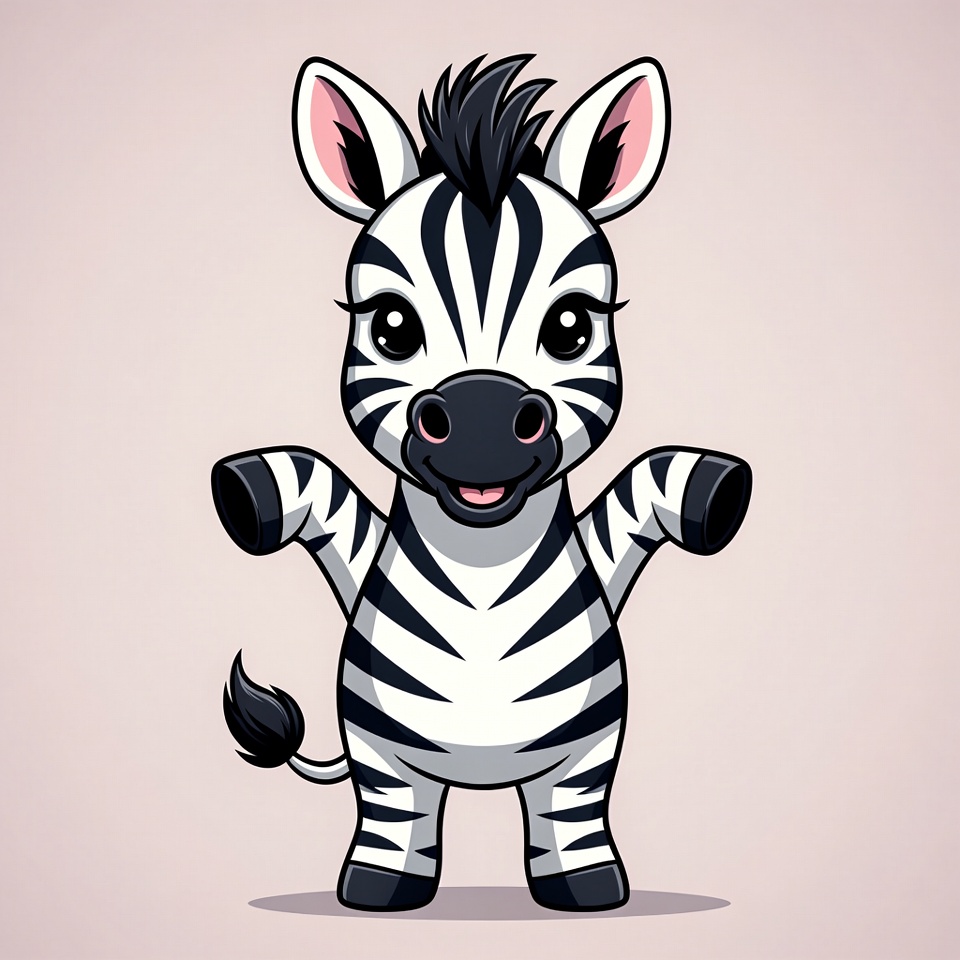 adorable zebra, animal, baby zebra, big eyes, cartoon zebra, chibi zebra, clipart, cute zebra, fun animal, happy zebra, illustration, isolated background, kawaii zebra, pink background, raised hooves, standing zebra, striped animal, vector art, young zebra, zebra