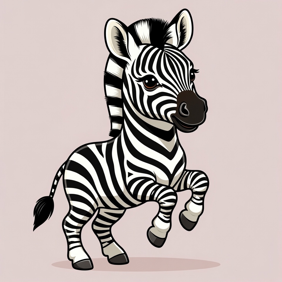 animal illustration, baby zebra, big eyes, black stripes, cartoon zebra, clipart, cute zebra, fluffy mane, illustration, isolated background, playful zebra, rearing zebra, striped animal, white stripes, young zebra, zebra