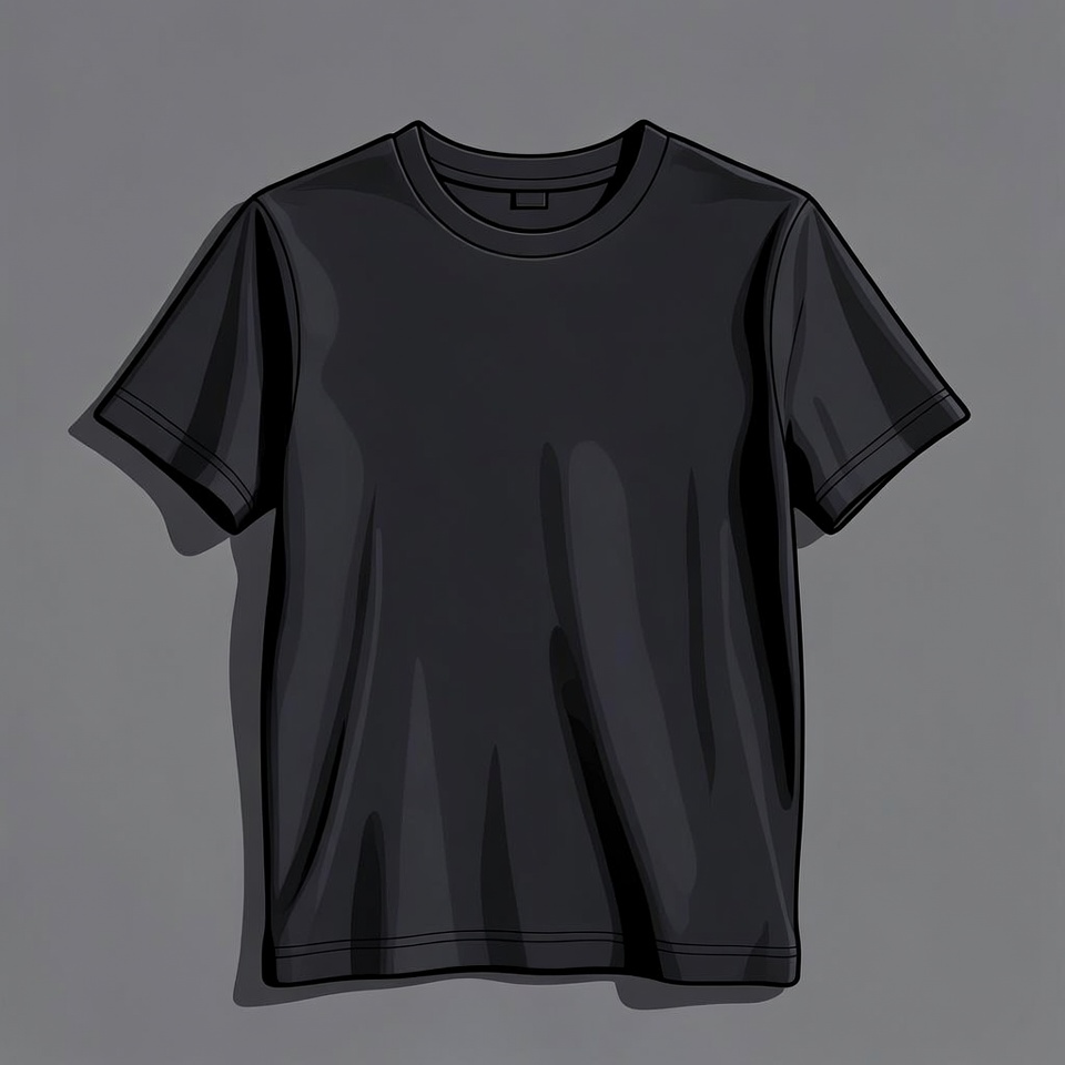 apparel, black shirt, clipart, clothing, crewneck, fashion, front view, graphic, illustration, isolated background, line art, shirt, short sleeve, simple, t-shirt, vector, black t-shirt