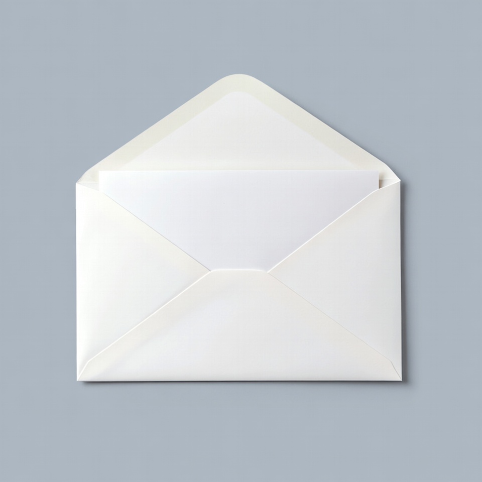 blank paper, correspondence, empty envelope, isolated background, letter, mail, open envelope, paper sheet, stationery, top view, white envelope, envelope