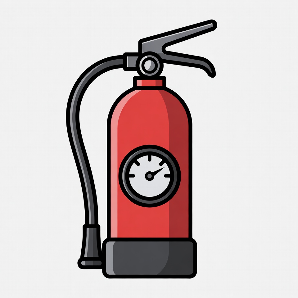 clipart, emergency equipment, fire protection, fire safety, hose, illustration, isolated background, nozzle, pressure gauge, red extinguisher, safety device, vector art, fire extinguisher