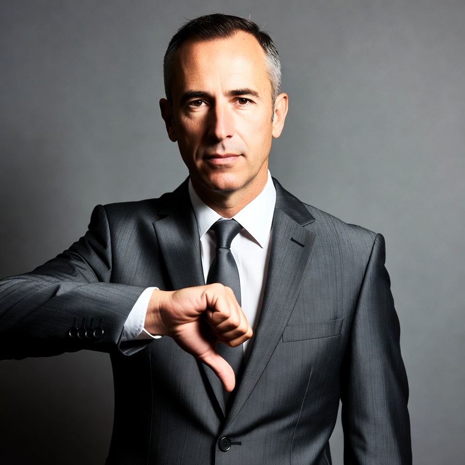 Man in suit giving thumbs down