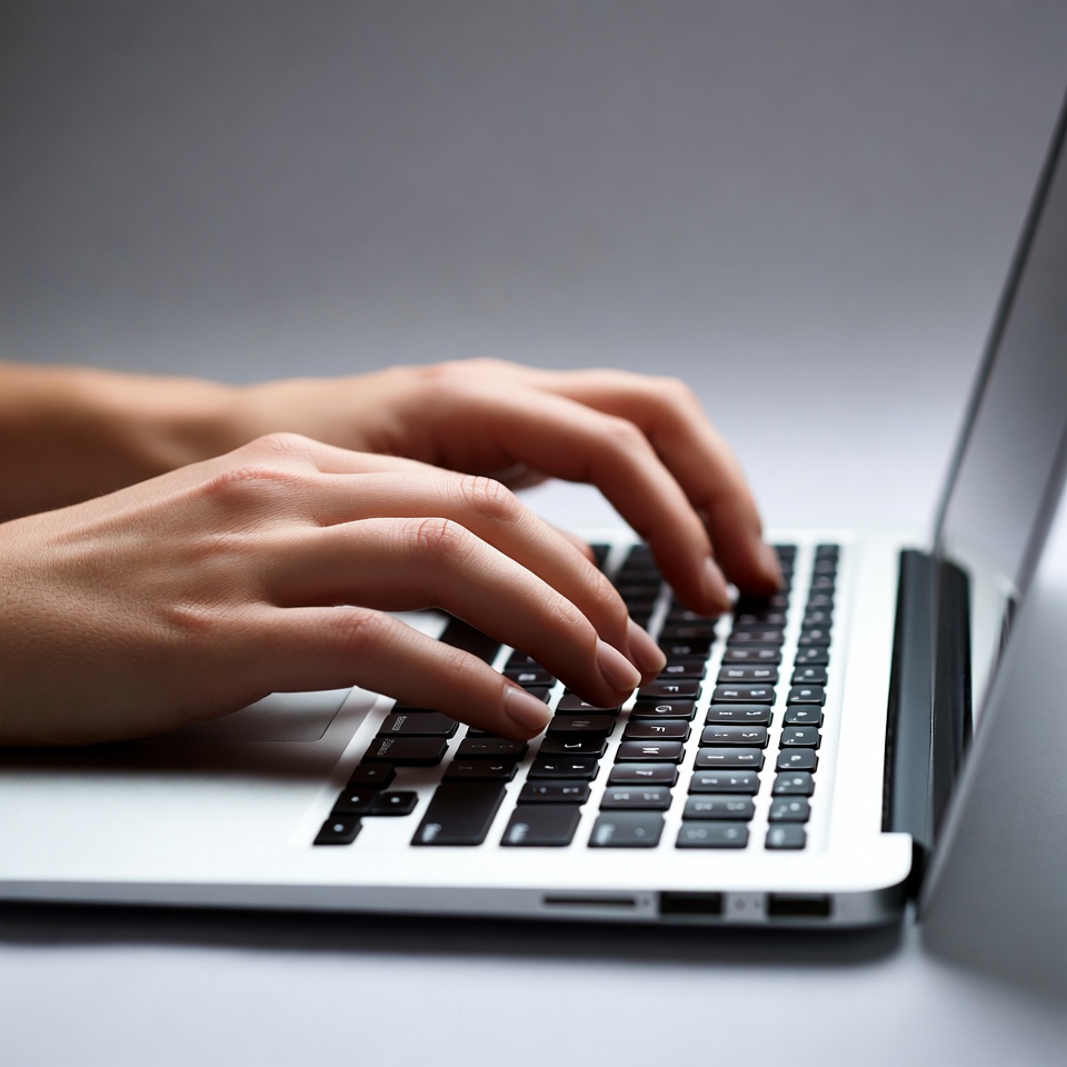 Hands typing on laptop keyboard