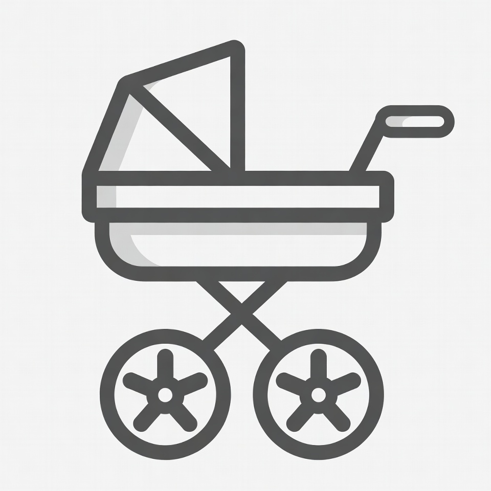 baby carriage, canopy, clipart, gray outline, handle, icon, illustration, infant transport, isolated background, line art, pram, stroller, vector, wheels, baby stroller