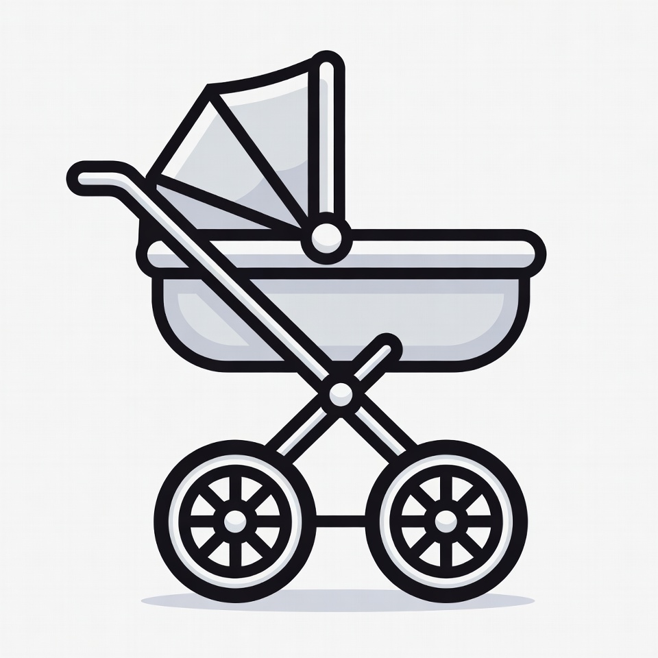 baby carriage, buggy, clipart, handlebar, hood, illustration, infant, isolated background, line art, newborn, pram, pushchair, stroller, vector, wheels, baby stroller